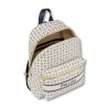 Mochila creada para la exclusiva colección cápsula Heritage Marina, inspirada en los ambientes marinos del verano. El Heritage Pvc adquiere un nuevo color dado por la combinación del marfil con un estampado en azul marino. Logotipo de letras Pollini colocado en la esfera frontal.