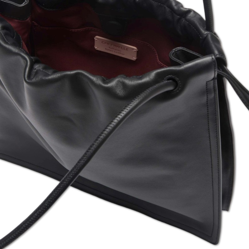 Elaborada en piel lisa, la línea Coccinelle Dulse realza la elegancia del material con sus distintivos pliegues suaves. Un cordón de piel sujeta todo el volumen de estos espaciosos bolsos con un aire elegante y romántico. La línea se caracteriza por el nuevo logotipo C-Me, creado con un exclusivo acabado en relieve sobre la piel. Este modelo está elaborado en piel lisa curtida con aceites especiales que la hacen suave al tacto. A pesar de su aspecto sedoso, la piel es resistente a la intemperie gracias al uso de resinas que la hacen ligeramente impermeable, manteniendo su aspecto natural.