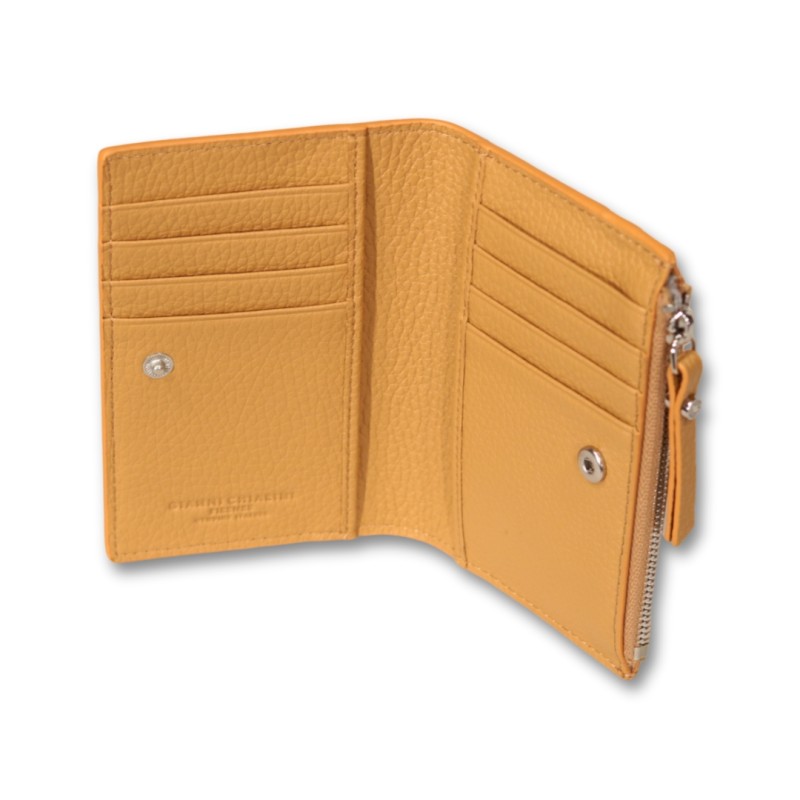 La cartera de Gianni Chiarini Firenze está hecha de suave piel martillada. Cuenta con cierre de cremallera con tirador a juego y un cierre a presión interno adicional. En su interior, cuenta con varios bolsillos planos multiusos.