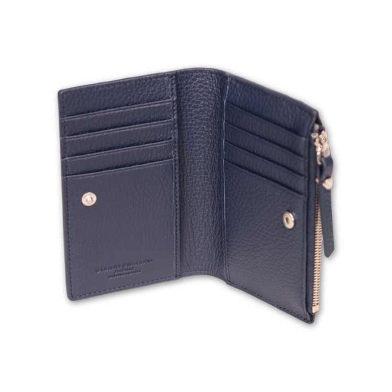 La cartera de Gianni Chiarini Firenze está hecha de suave piel martillada. Cuenta con cierre de cremallera con tirador a juego y un cierre a presión interno adicional. En su interior, cuenta con varios bolsillos planos multiusos.
