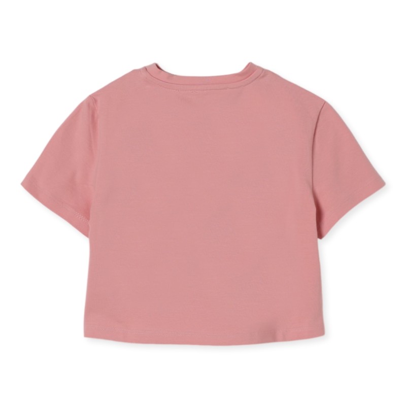 Camiseta cropped Twinset de algodón elástico, maxi logo con tachuelas y pedrería en la parte delantera, cuello redondo, manga corta.