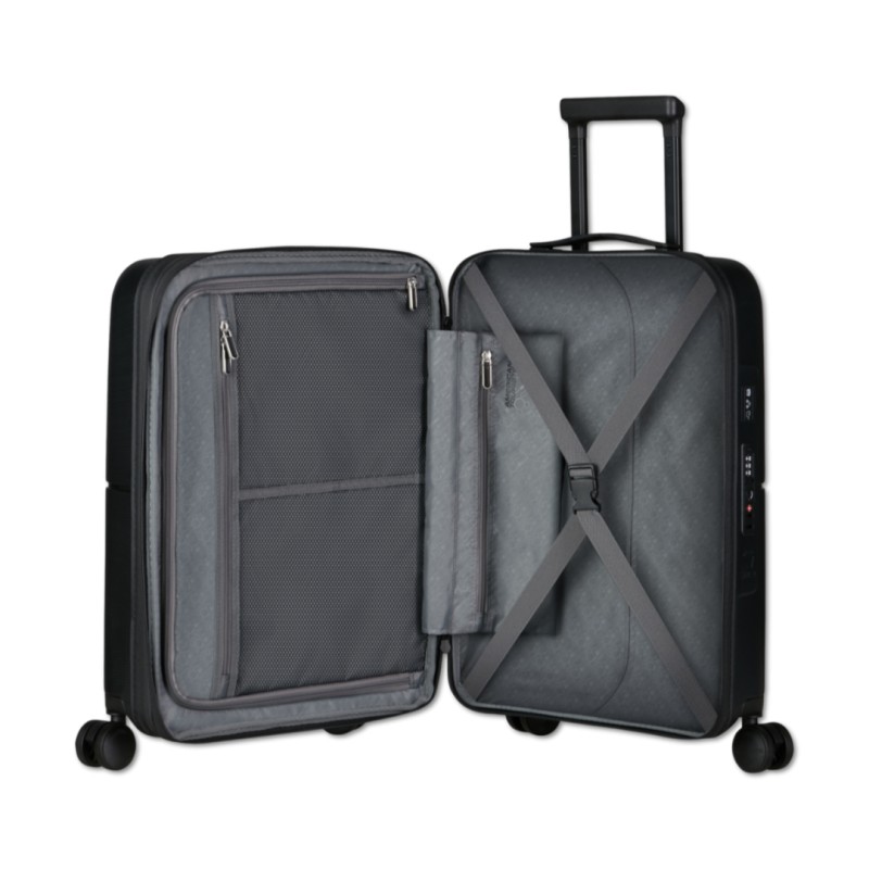 La nueva línea de American Tourister presenta un diseño único con una combinación de texturas brillantes y arenadas, inspiradas en líneas geométricas que crean un juego de luz y aumentan la resistencia a los arañazos. Personalízala con las pegatinas del interior de la maleta.