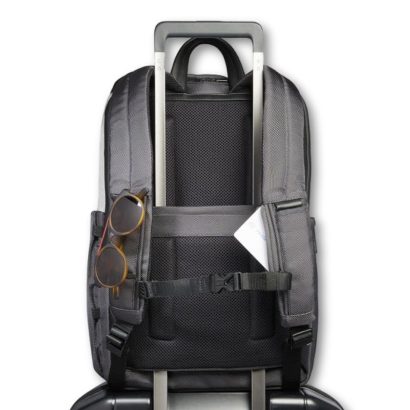 Mochila de viaje para portátil de 15,6" y iPad®Pro de 12,9" en tejido reciclado con correa pectoral, antigolpes y protección RFID, compatible con Easyjet.