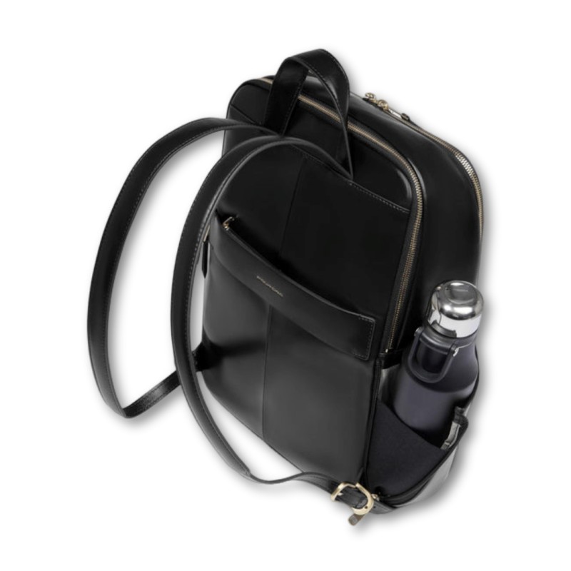 Mochila de piel para mujer para portátil de 14" y iPad® con protección antigolpes y RFID, bolsillos para AirPods® y botella de agua.