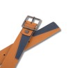 Cinturón para hombre con hebilla Hakone de piel con logo grabado en la hebilla. Emblema con logo único en bajo relieve tamaño 125