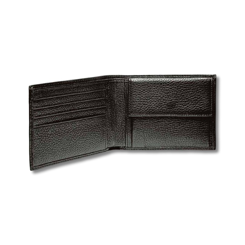 Porte-cartes avec porte-monnaie, 4 emplacements pour cartes. Grand espace pour les documents et double poche pour les billets. Protection RFID.