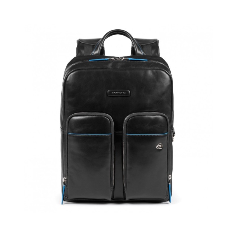 Sac à dos Piquadro en cuir, fermeture zippée, poches intérieures multifonctions, 4 poches extérieures, bretelles réglables et ergonomiques.
