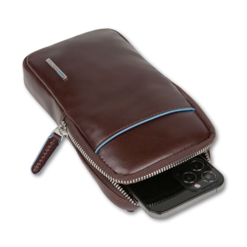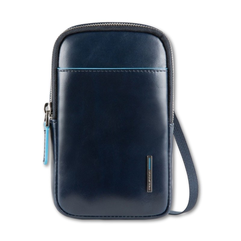 Portefeuille tour de cou homme pour smartphone avec port Papeterie en cuir Bleu Carré avec porte-carte de crédit et protection anti-fraude RFID