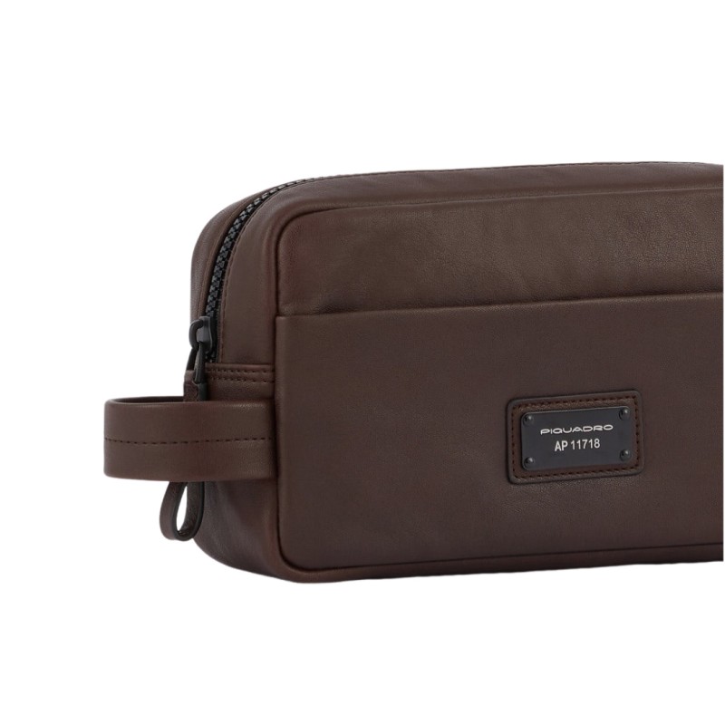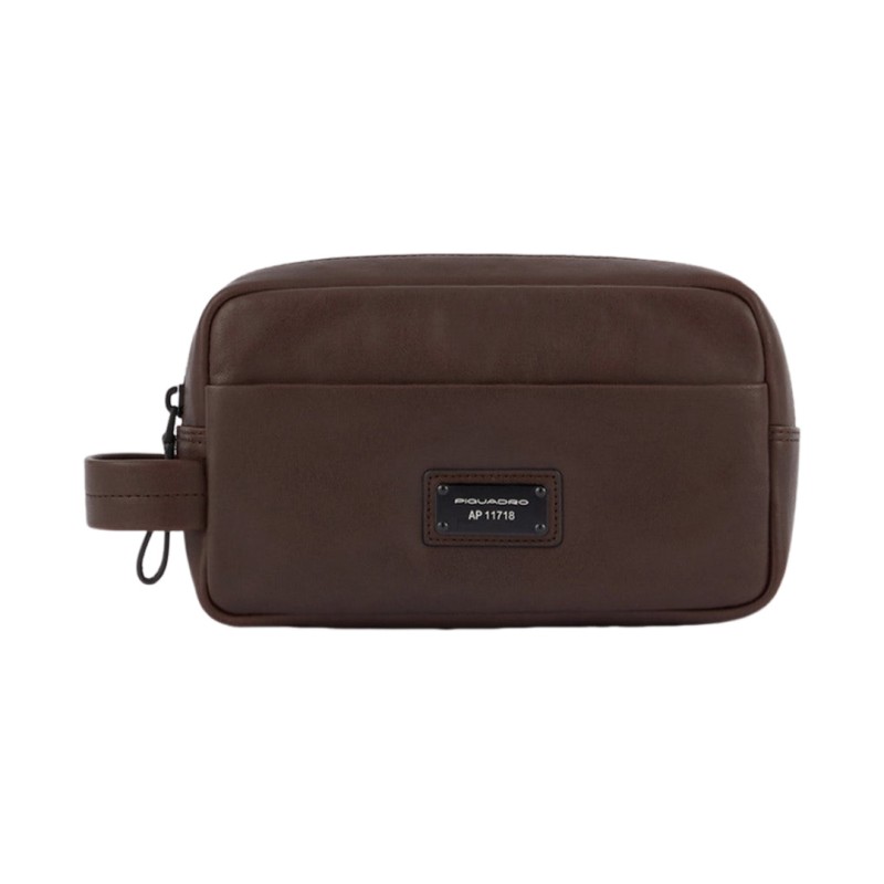 Pochette Piquadro HARPER en cuir, fermeture zippée, une poignée.