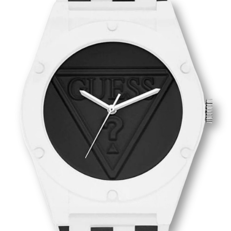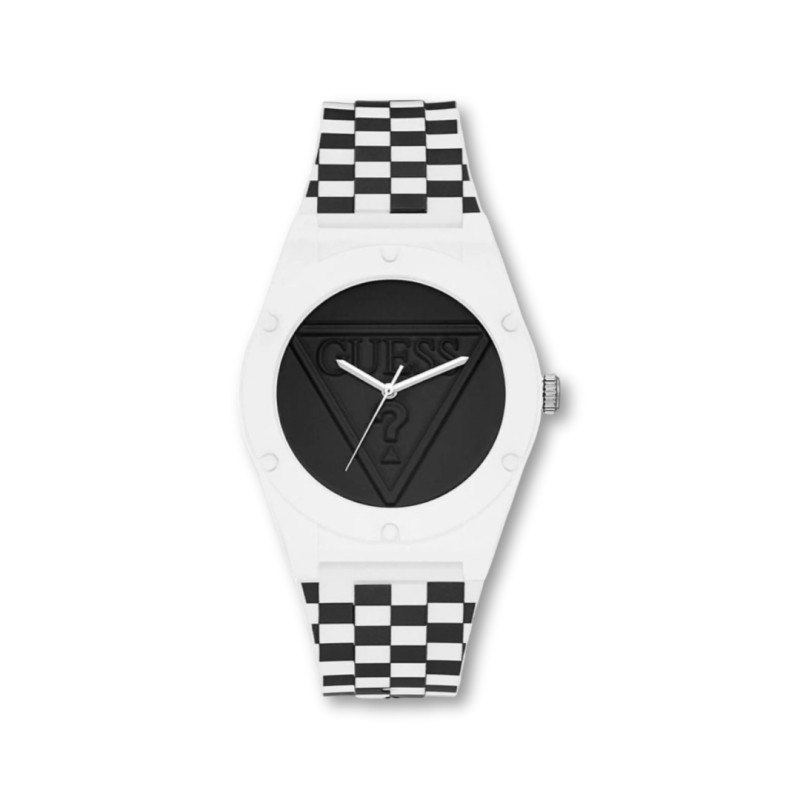 Montre à quartz analogique rétro pop Guess avec bracelet en silicone. Batterie non incluse.