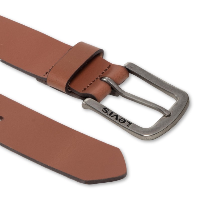 Ceinture de couleur unie Levi's pour hommes. Matériau en cuir avec boucle argentée avec le logo de la célèbre marque imprimé à l'intérieur.