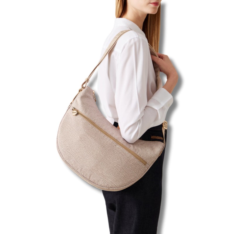 L'emblématique Luna Bag de Borbonese devient un « hobo » Medium de la Eco Line. Combinaison idéale de style et de polyvalence.