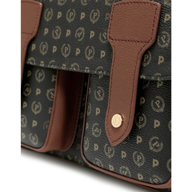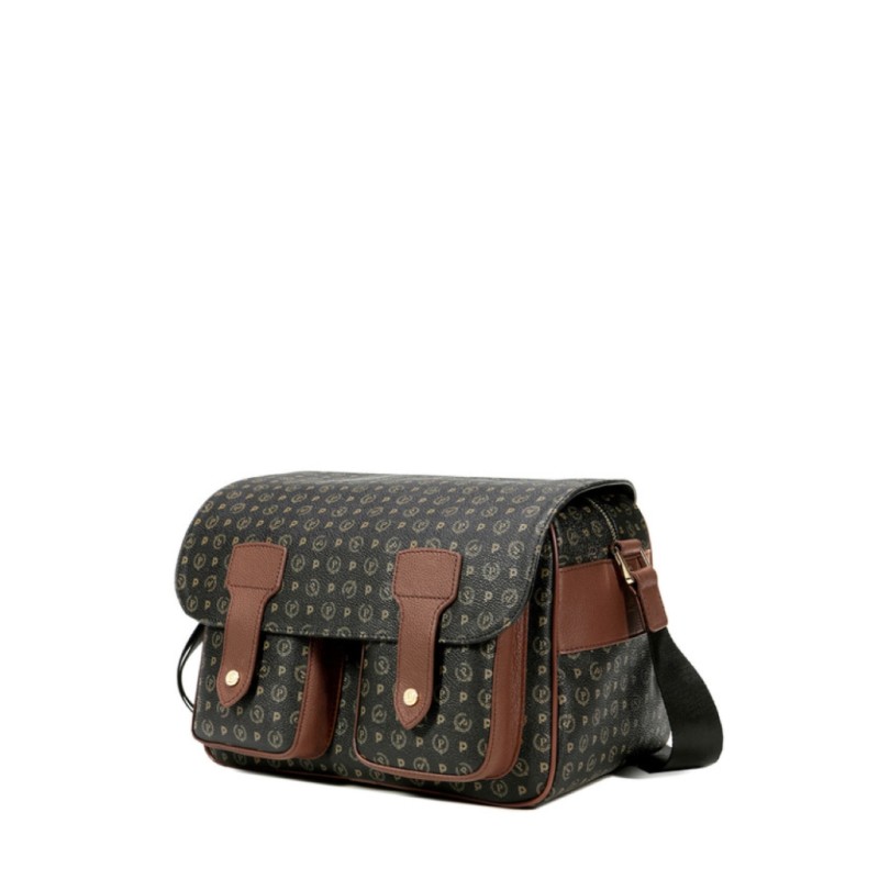 Sac bandoulière femme Pollini Heritage en simili cuir, logo, empiècements en cuir, bandoulière réglable en tissu et fermeture zippée et rabat.