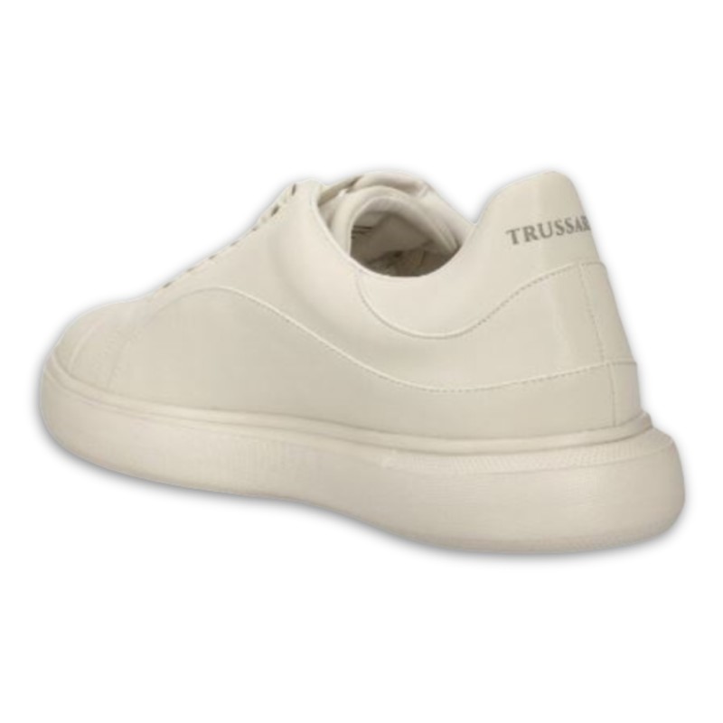 Baskets basses Yrias en simili cuir souple de couleur unie. Le modèle présente un insert arrière orné du lettrage Trussardi. Fermeture en dentelle.