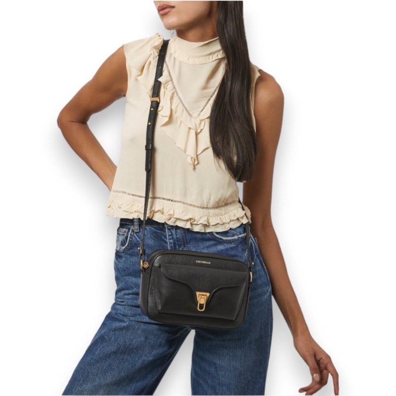 Ce sac photo de la ligne Beat se combine facilement avec tout type de tenue. Il est enrichi d'une poche extérieure caractérisée par la fermeture métallique emblématique en forme de plectre, idéale pour toujours garder vos objets personnels en sécurité.