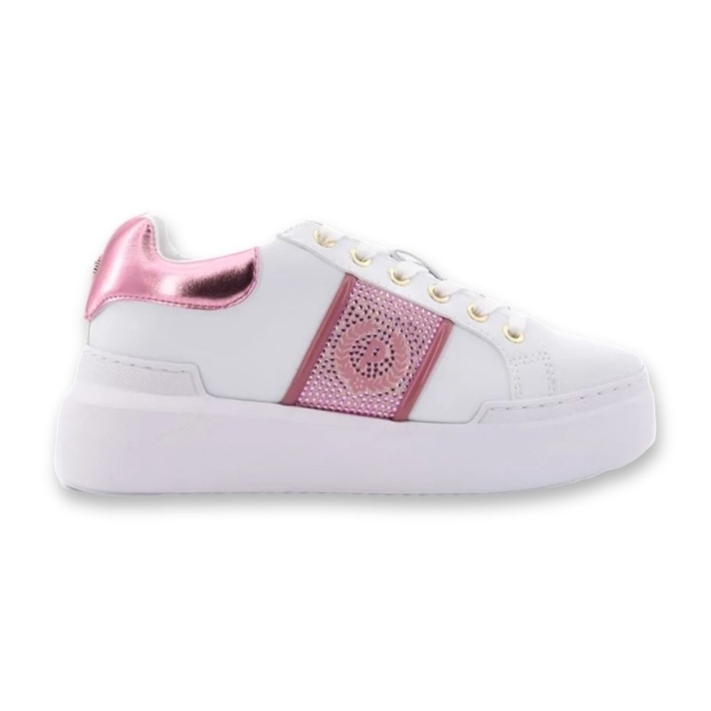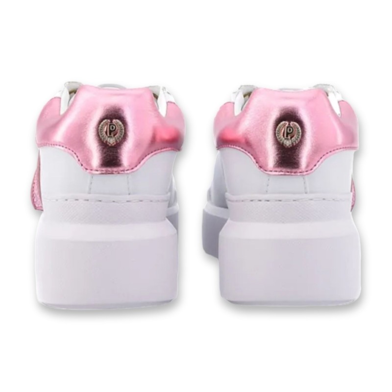 Baskets à lacets Pollini, logo P latéral avec couronne de laurier avec zircons.