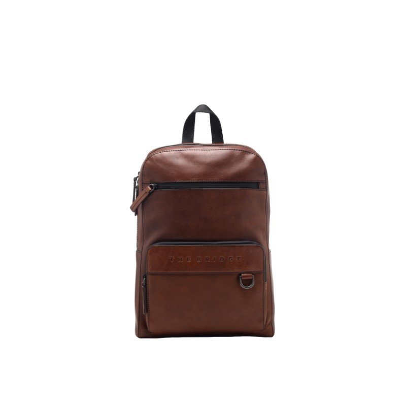 Sac à dos pour hommes The Bridge avec bretelles réglables. Compartiment grand et confortable avec fermeture éclair et poche de service externe pratique sur le devant. Finition lisse et logo appliqué sur le devant