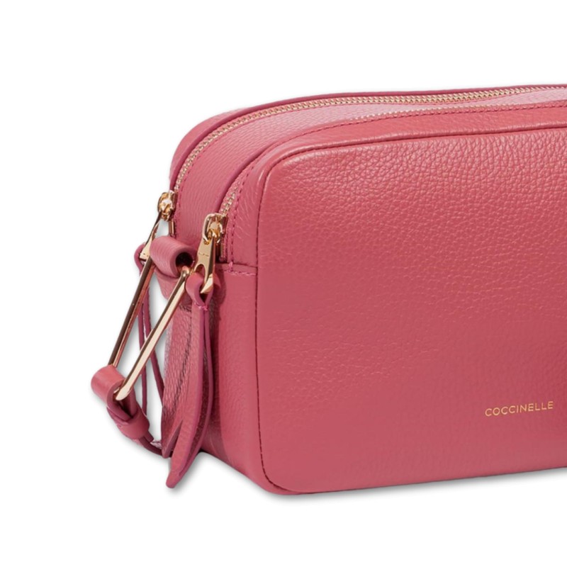 Coccinelle Malory est une ligne qui allie parfaitement design et fonctionnalité. Conçus pour accompagner les femmes à tout moment de la journée, ces sacs se distinguent par le souci du détail et l'étude fonctionnelle des compartiments internes. Dans un jeu d'identité en constante évolution dans lequel la silhouette iconique du plectre se transforme en proportions, tandis que le cuir grenat rehausse la douceur de chaque modèle.