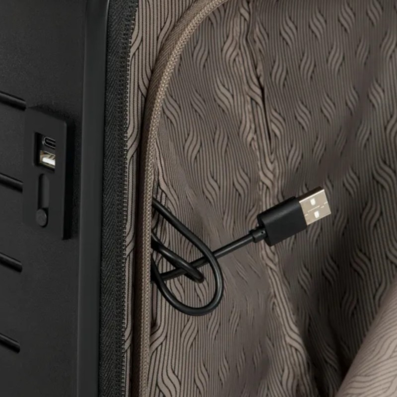 Trolley cabine rigide de la collection Ulisse B|Y Bric's. La coque extérieure au design urbain, le port USB et les roues encastrées en font un trolley moderne, parfait pour vos courts trajets. Poignée de remorquage confortable et fonctionnelle avec tubes en aluminium, avec trois positions d'arrêt intermédiaires activables par un bouton-pression. Les poignées supérieures et latérales sont plates et ergonomiques. Les doubles roues permettent une rotation aisée à 360° tout en assurant un silence maximal grâce à leur revêtement en caoutchouc.Design extérieur présentant un bas-relief brillant d'inspiration urbaine, en contraste avec la couleur opaque de la coque. Détails du logo B|Y sur les poignées de levage assorties à la couleur de la coque.