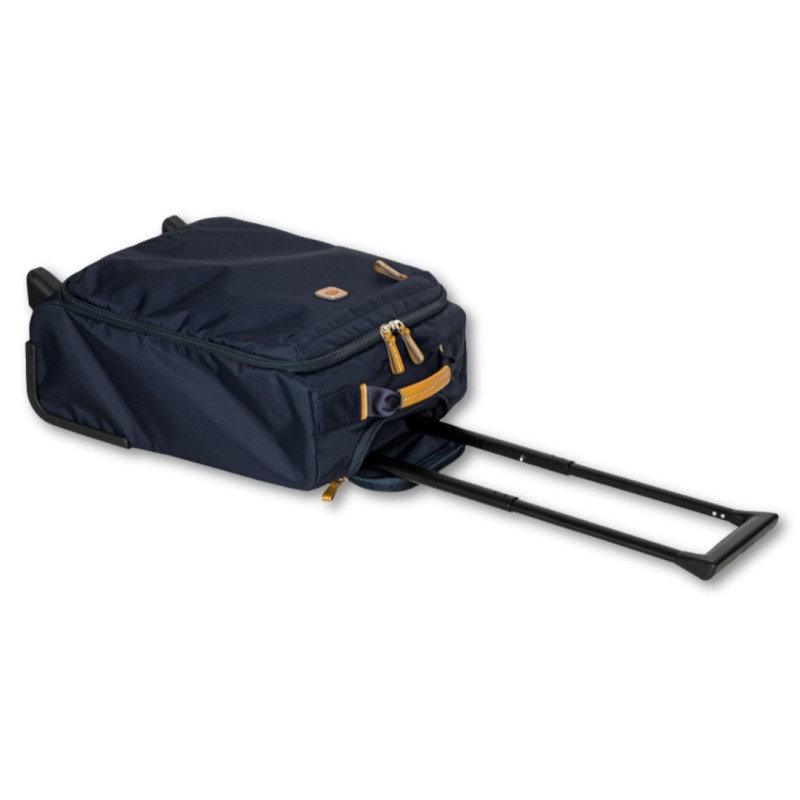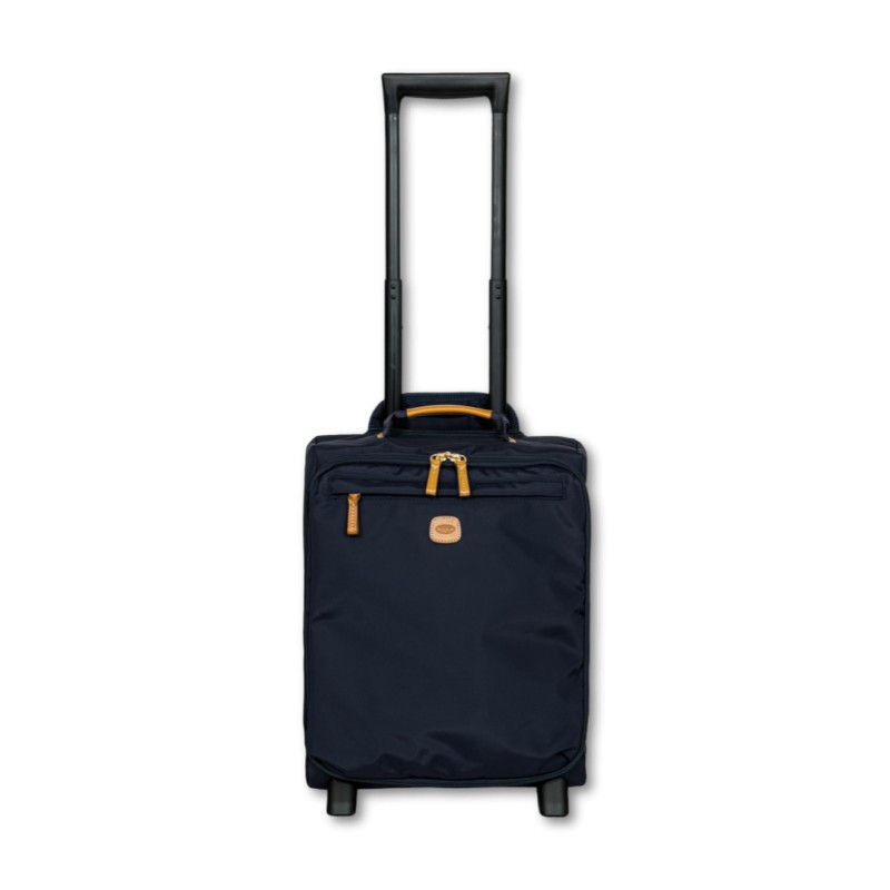 Le trolley de cabine sous-siège X-Collection a la taille idéale pour s'adapter au compartiment sous-siège d'un avion. Il vous permet de maximiser la capacité de votre bagage à main, sous une forme plus compacte. Fabriqué en nylon recyclé durable et imperméable avec une construction rigide et légère. Enrichi de pièces en cuir véritable, caractéristique distinctive de Bric's, et de détails de logo.