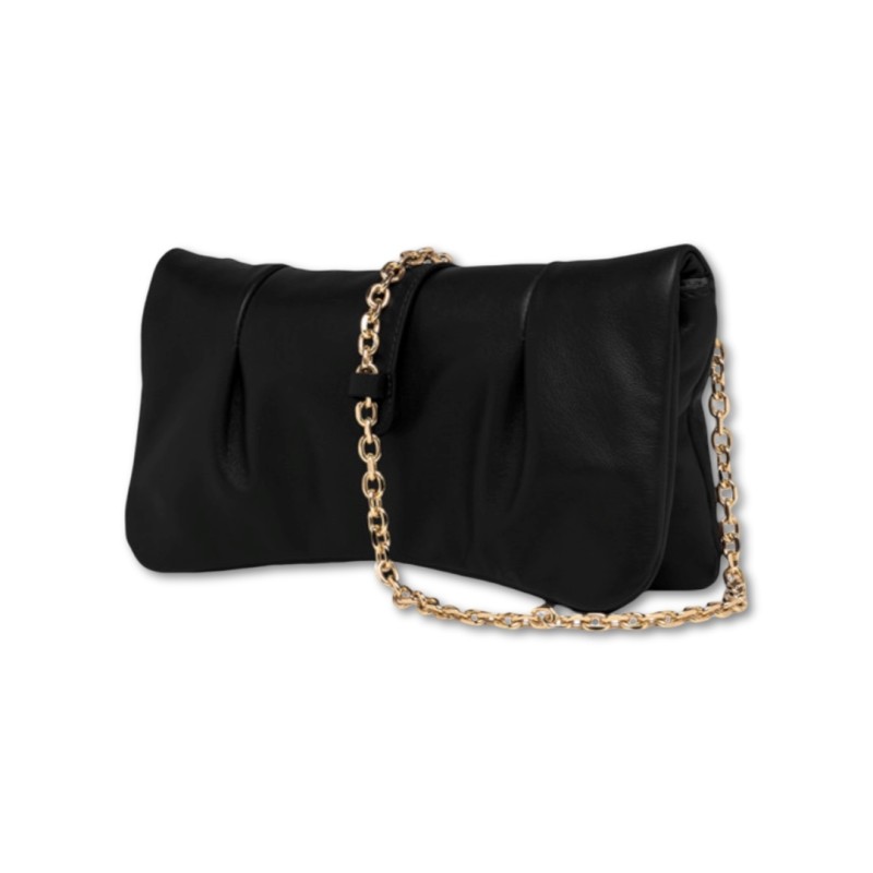 Découvrez l'allure raffinée du sac Gianni Chiarini, un incontournable pour les femmes à la mode ! Avec son design noir épuré et sa forme rectangulaire élégante, ce sac respire la classe pure. Des plis subtils sur le devant ajoutent une touche ludique, tandis que la ceinture en chaîne dorée offre un contraste luxueux.