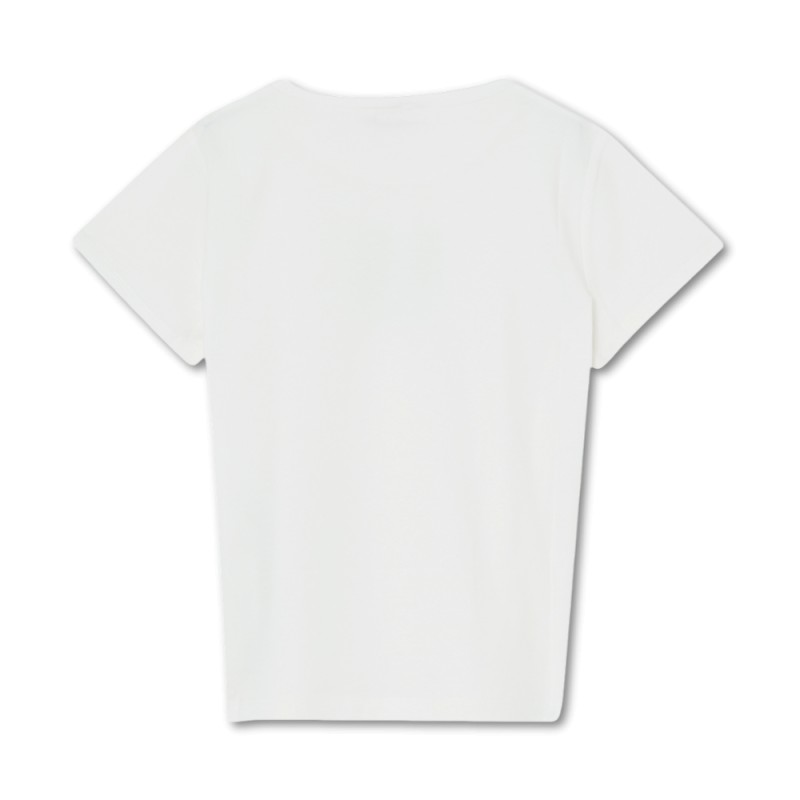 T-shirt en jersey de coton stretch, logo avec strass et perles sur le devant, col ras du cou, manches courtes