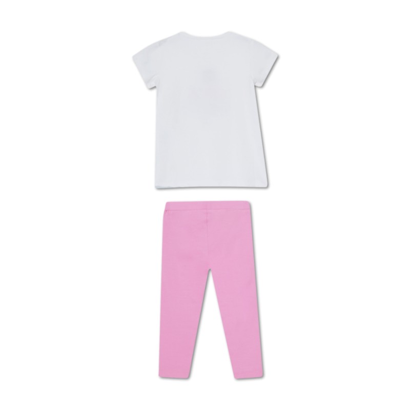 Ensemble fille en jersey de coton stretch, imprimé graphique avec strass sur le devant, encolure ronde, manches courtes, pantalon à taille élastique
