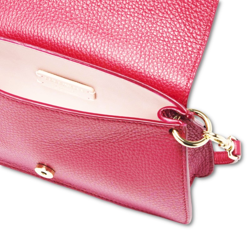 L'étui pour téléphone de la ligne C-Me est orné du logo réinterprété à travers le C Coccinelle qui noue et enlace le médiator, élément emblématique de la marque. Son style féminin et élégant, grâce aux détails sinueux du rabat, le rend parfait pour sublimer n'importe quel look. Ce modèle est confectionné en cuir traité sur des machines spéciales, puis foulonné pour préserver sa souplesse. Ce cuir très résistant et facile d'entretien est idéal pour un usage quotidien.