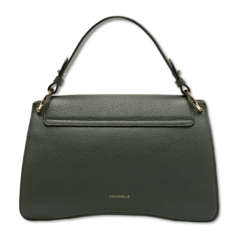 Une nouvelle pièce signature rejoint la marque : Coccinelle C-Me. Le logo est réinterprété à travers le C de Coccinelle qui noue et enlace le médiator, élément emblématique de la marque, une union intime avec la vie d'une femme, entre passé et présent. Des lignes géométriques et des courbes sophistiquées renforcent le design, tandis que la construction à soufflet apporte une touche de fonctionnalité et d'élégance délicate à ce sac, conçu pour être le compagnon indispensable de la femme Coccinelle tout au long de la journée. Ce modèle est confectionné en cuir traité sur des machines spéciales, puis foulonné pour préserver sa souplesse. Ce cuir très résistant est facile à nettoyer, ce qui le rend idéal pour un usage quotidien.