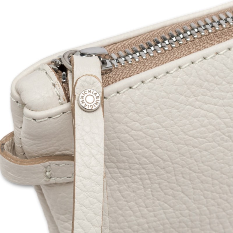Portée à la main ou au poignet, la pochette Hermy de Gianni Chiarini Firenze est confectionnée en cuir martelé de première qualité. Jeune et ludique, elle est dotée d'une fermeture éclair contrastante et d'une fine bandoulière amovible. Idéale pour compléter une tenue décontractée, elle est aussi parfaite pour une soirée élégante.