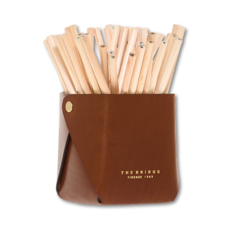Un porte-stylo de bureau à l'esthétique structurée, alliant le style incomparable de The Bridge à la qualité du cuir tanné végétal.