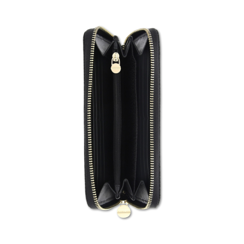 Portefeuille zippé Borbonese en nylon OP avec intérieur en cuir. 3 compartiments internes pour billets et billets, 12 emplacements pour cartes de crédit, porte-monnaie zippé, 2 poches plates pour documents.