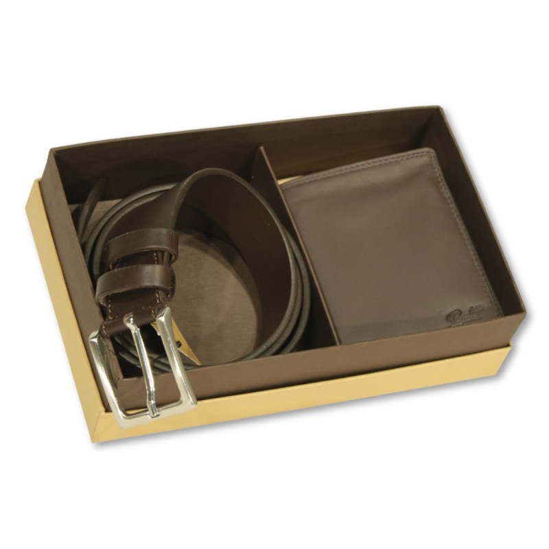 Ensemble portefeuille avec ouverture livre + ceinture de la ligne "Born Soft" en véritable cuir nappa doux au toucher, dans coffret cadeau.