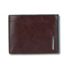 Men's wallet in raw cut leather, with coin purse, transparent flap, 7 slots for credit cards, double compartment for banknotes.