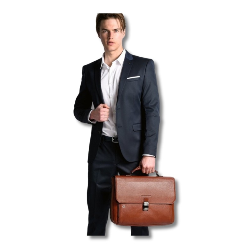 Expandable computer briefcase with flap, iPad®10.5"/9.7" holder and foldable CONNEQU Black Square