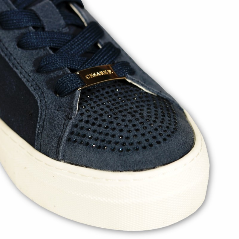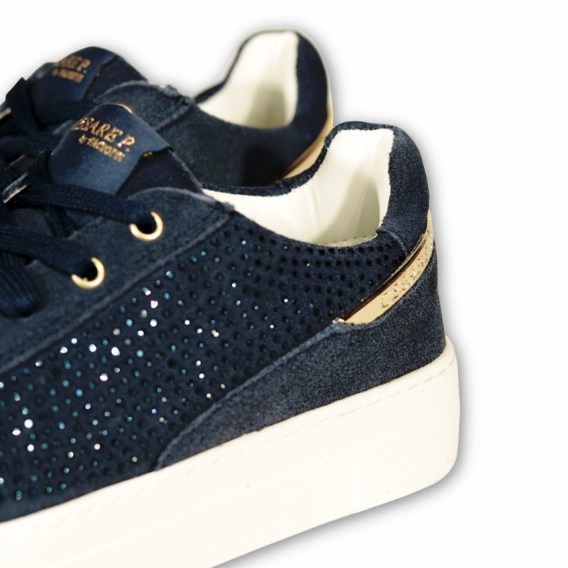 Cesare Paciotti sneakers in eco-leather suede with contrasting bottom, lace-up closure with logo plate on the front and lacquered on the back + DYE ON DYE RHINESTONES APPLIED