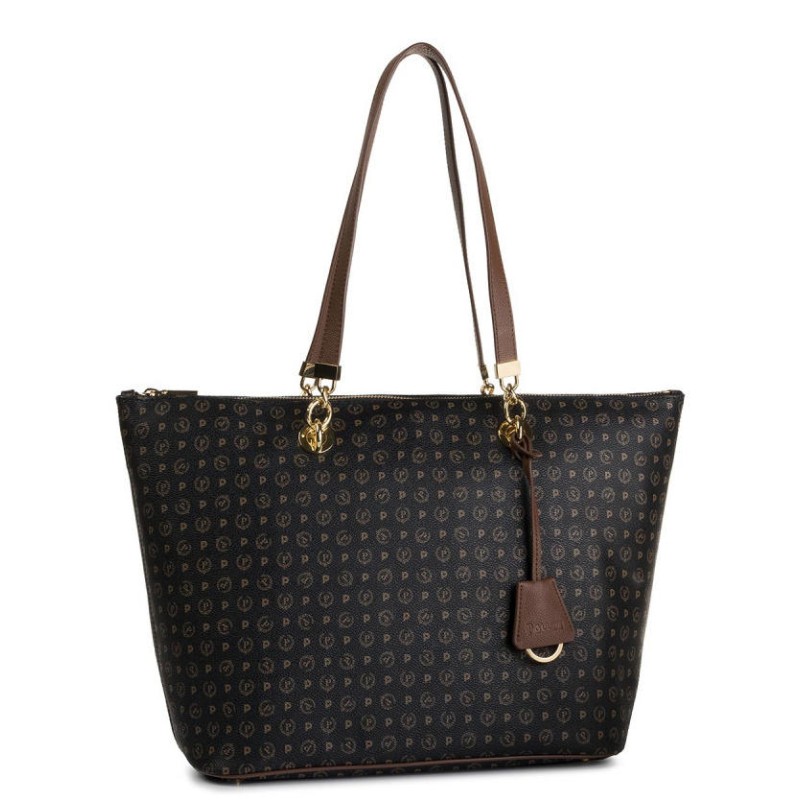 Practical shopping bag from the Heritage Logo classic collection. The iconic all-over monogram gives an elegant and timeless allure. Double removable handle, to be carried both by hand and on the shoulder. Zip closure. Clochette key ring