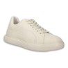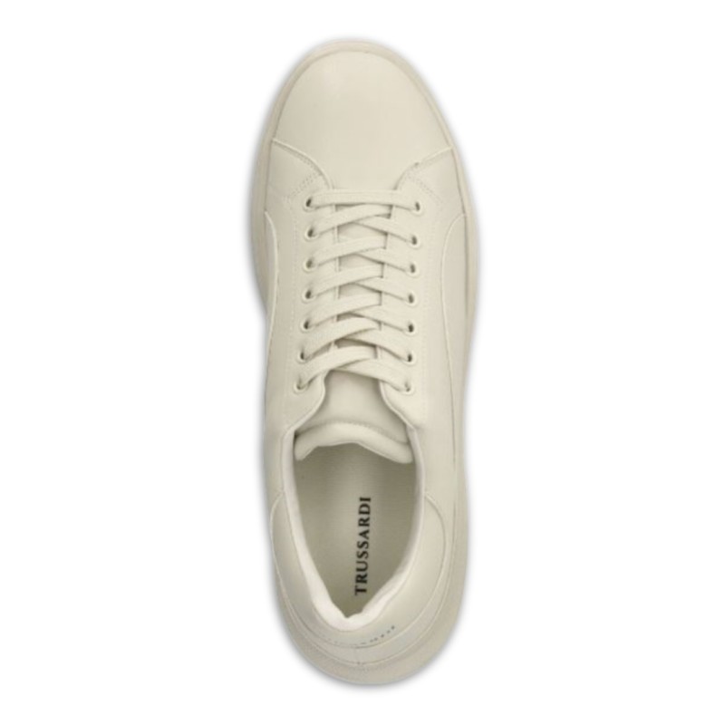 Yrias low top sneaker made of soft, solid color imitation leather. The model features a rear insert embellished with Trussardi lettering. Lace closure.