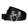 Belt made of soft solid color leather with a smooth texture. The accessory is embellished with a silver-colored metal buckle depicting the new circular greyhound logo. Finished with a single loop.