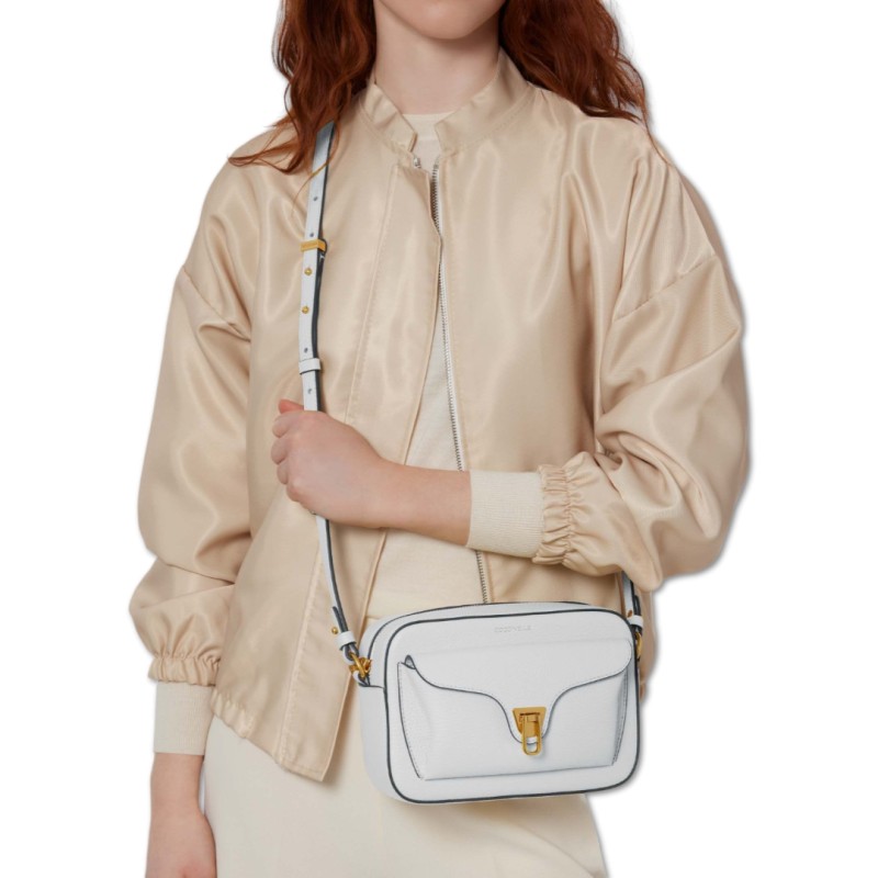 This camera bag from the Beat line is easy to combine with any type of outfit. It is enriched by an external pocket characterized by the iconic plectrum-shaped metal closure, ideal for always keeping your personal items safe.
