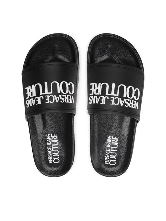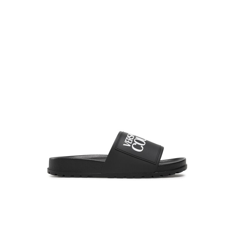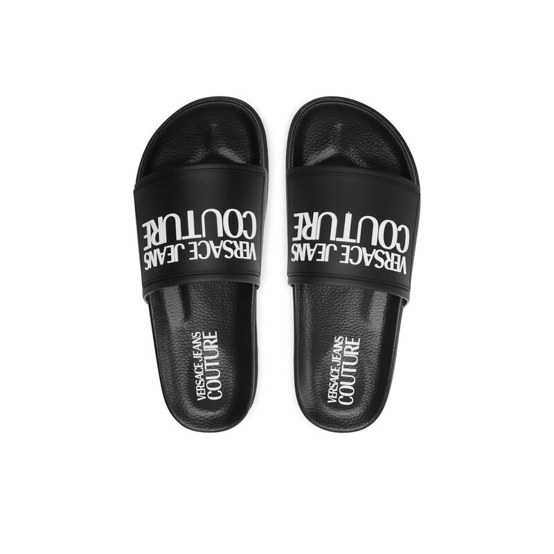 Slide sandals with logo print on the front, embossed logo on the back, open toe and flat rubber sole.
