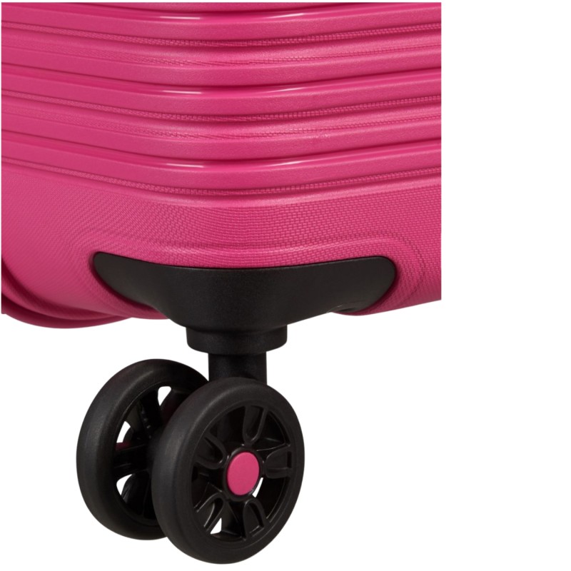 American tourister LiftOff trolley in polypropylene with a design inspired by the 3D level, with matching zip and metal logo.