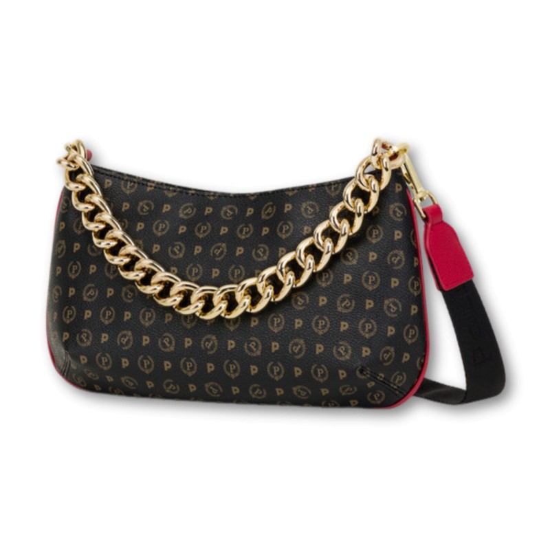 Heritage Logo Classic collection shoulder bag with iconic monogram print with the P-alloro logo. The sporty attitude is combined with a more sophisticated look, thanks to the maxi chain in light gold plating which also acts as a handle. The shoulder strap, made of logoed jacquard ribbon, is embellished with a removable mini pouch. The contrasting piping defines the geometry of the bag.