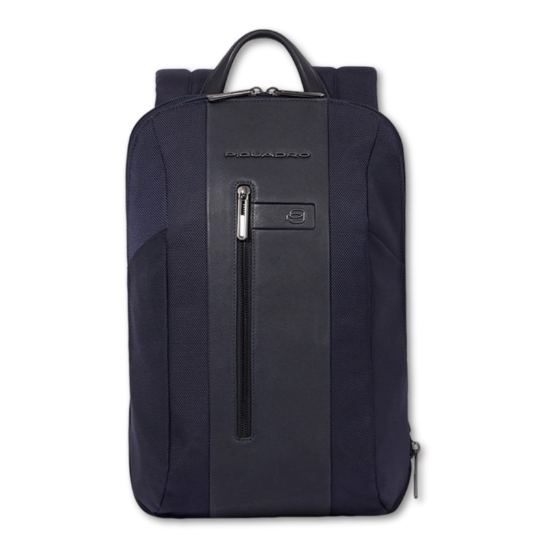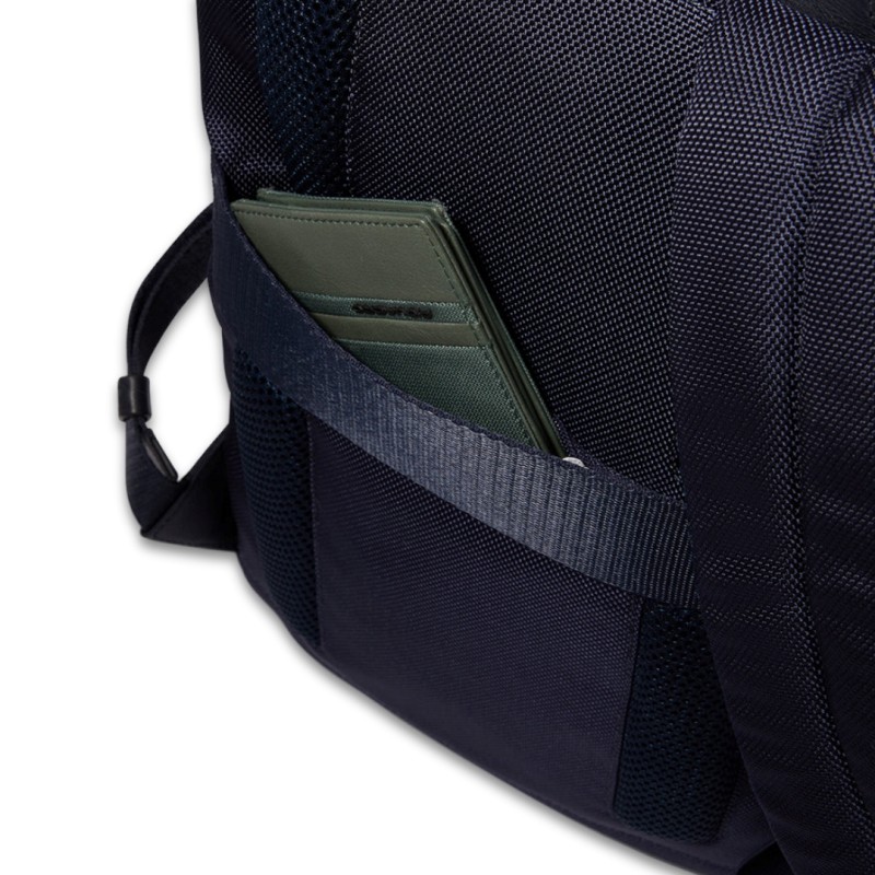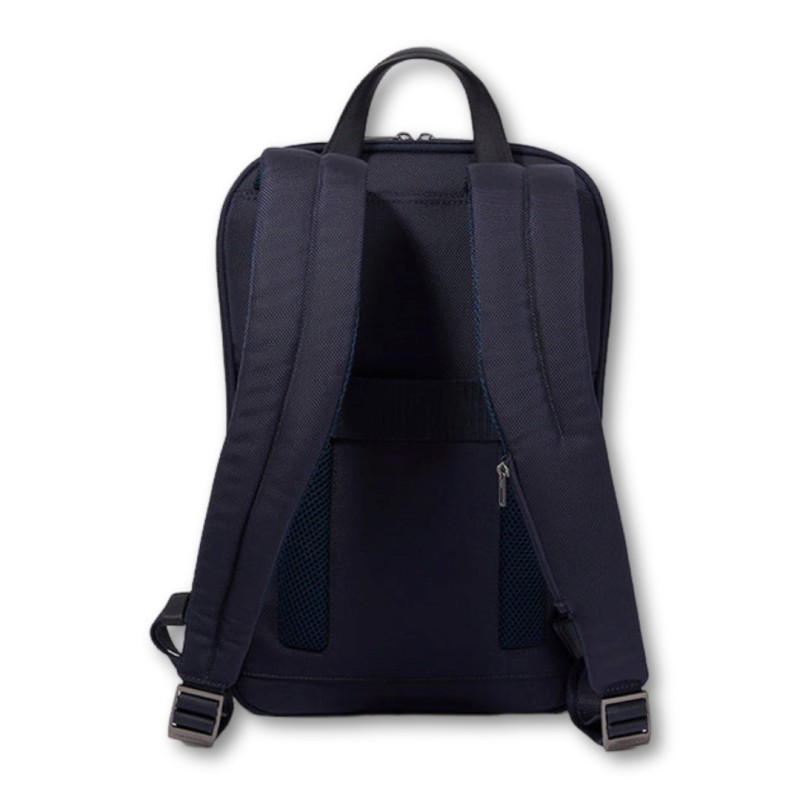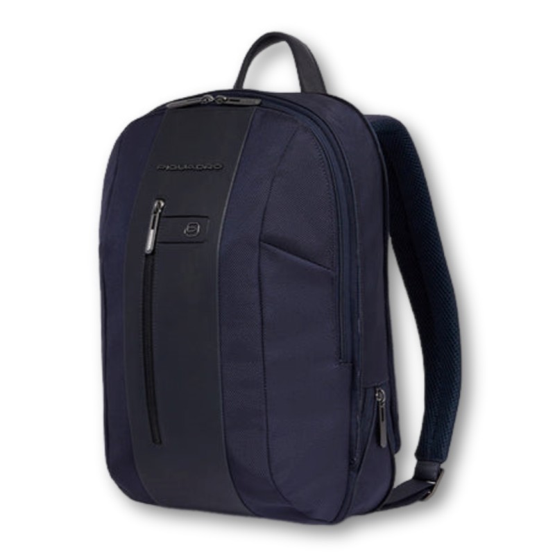 Slim backpack for PC and iPad® in recycled fabric and leather with pocket for AirPods®, shockproof and RFID anti-fraud protection, expandable