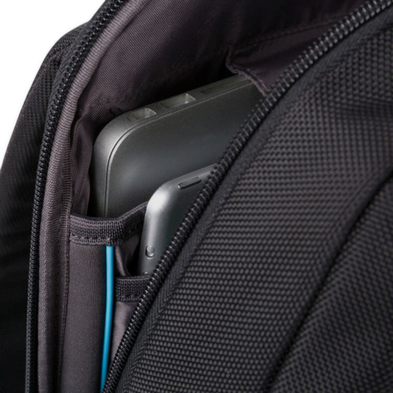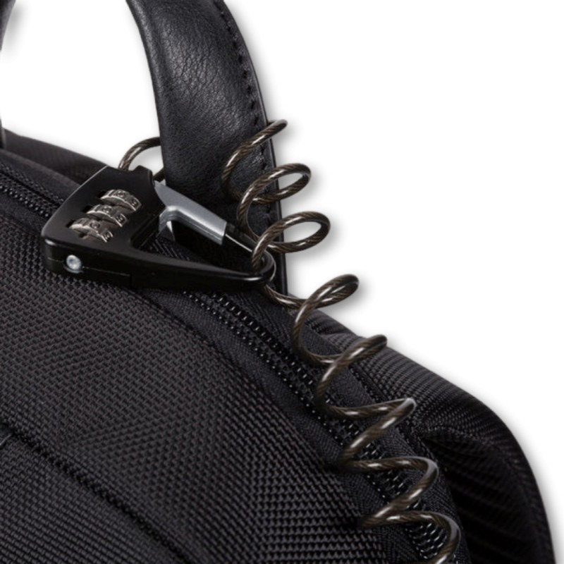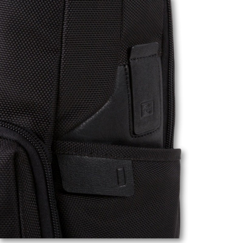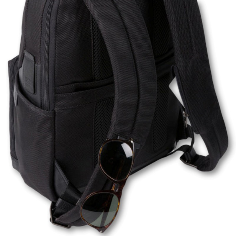Backpack for 14" laptop and iPad® in recycled fabric and leather with CONNEQU, anti-theft cable, USB and USB Type C ports
