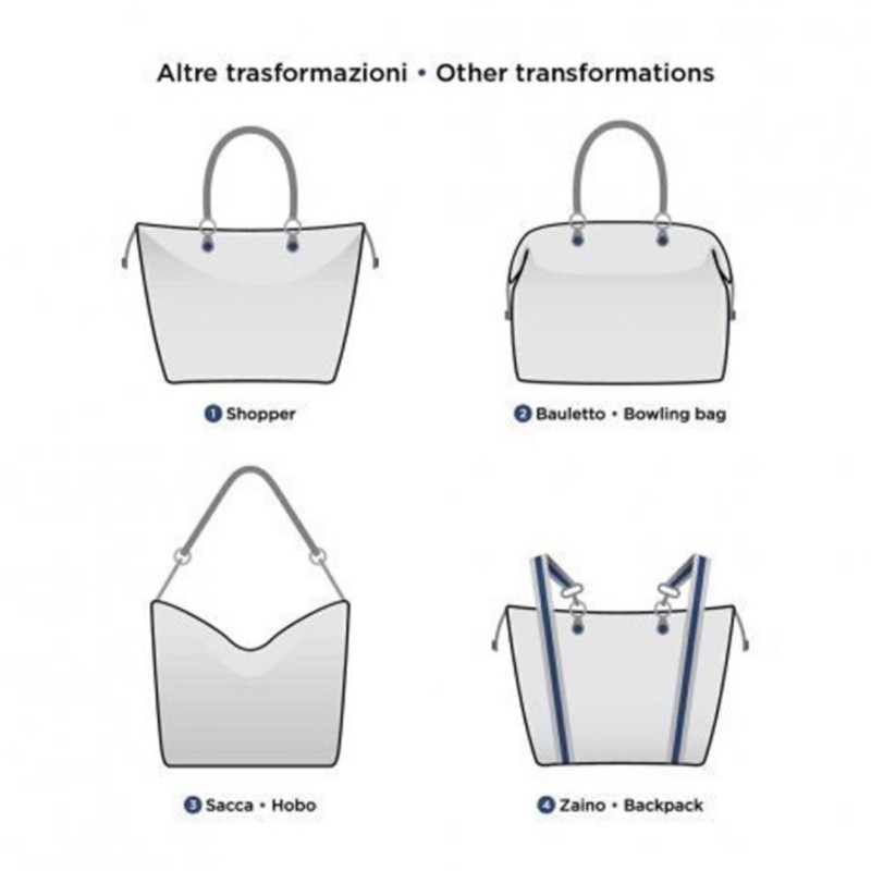 The G3 PLUS medium shopping bag is a convertible bag that can be used as a flat bag, shopper, trunk, shoulder bag and backpack.
