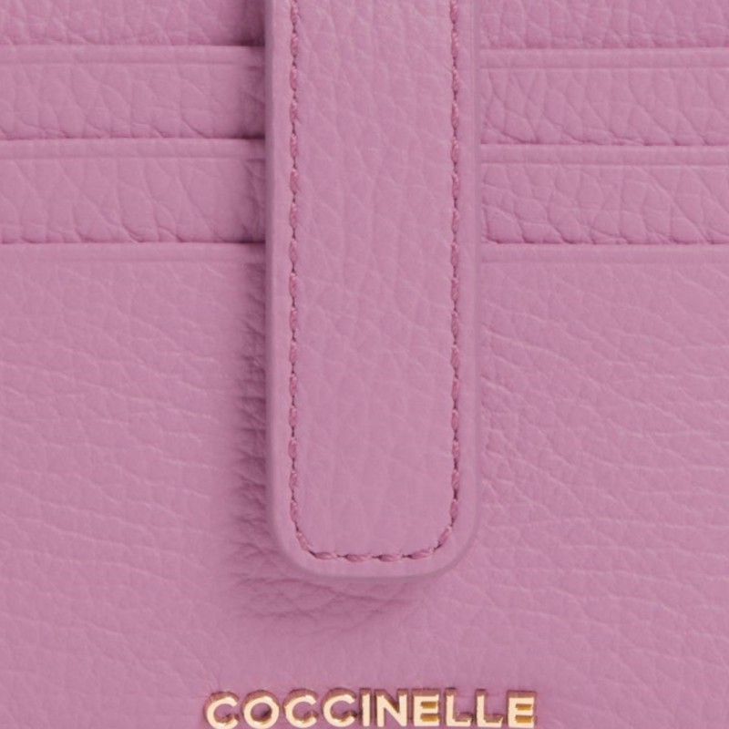 This wallet from the Metallic Soft line is embellished with the metal Coccinelle logo. Practical and compact, its space is organized to store your essentials in an orderly and careful manner. This model is made of leather processed using specific machinery and then drummed to maintain its softness. It is a very resistant leather that is easy to clean, ideal for everyday use.