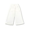 Trousers with pleats, side welt pockets, elasticated waist on the back, metal logo label, hidden button and zip fastening, belt loops, flared bottom, white colour