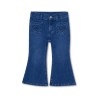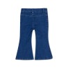 Stretch cotton blend denim jeans, used wash, regular waist, flared leg, five-pocket style, heart logo embossed on the front, button and hidden zip fastening