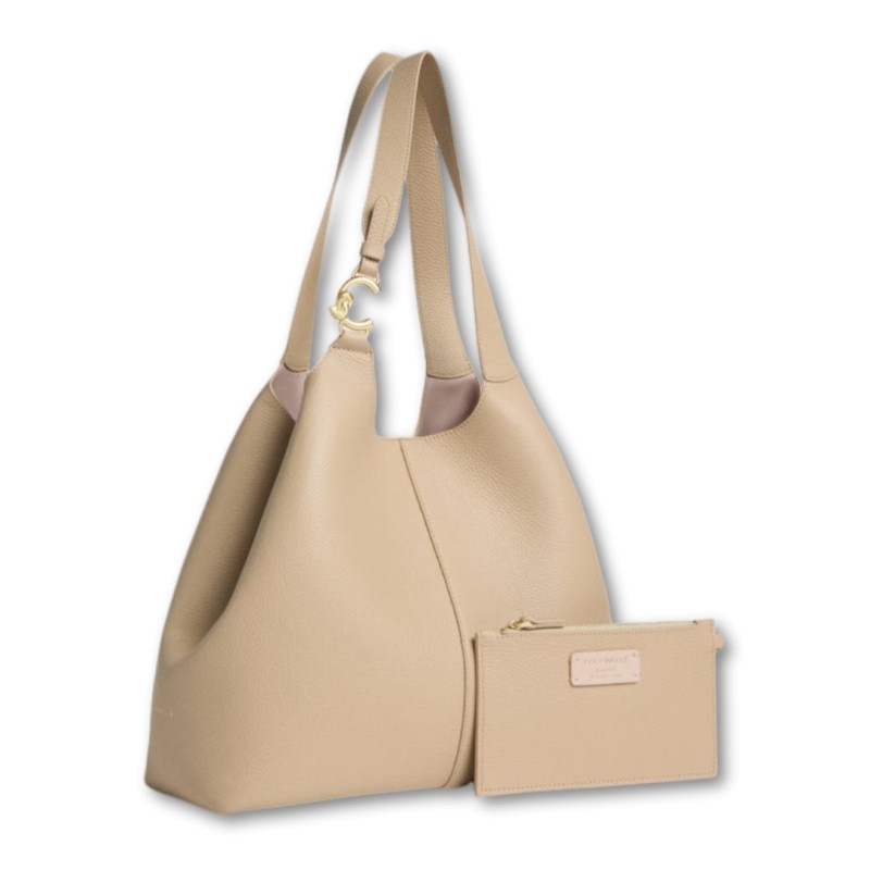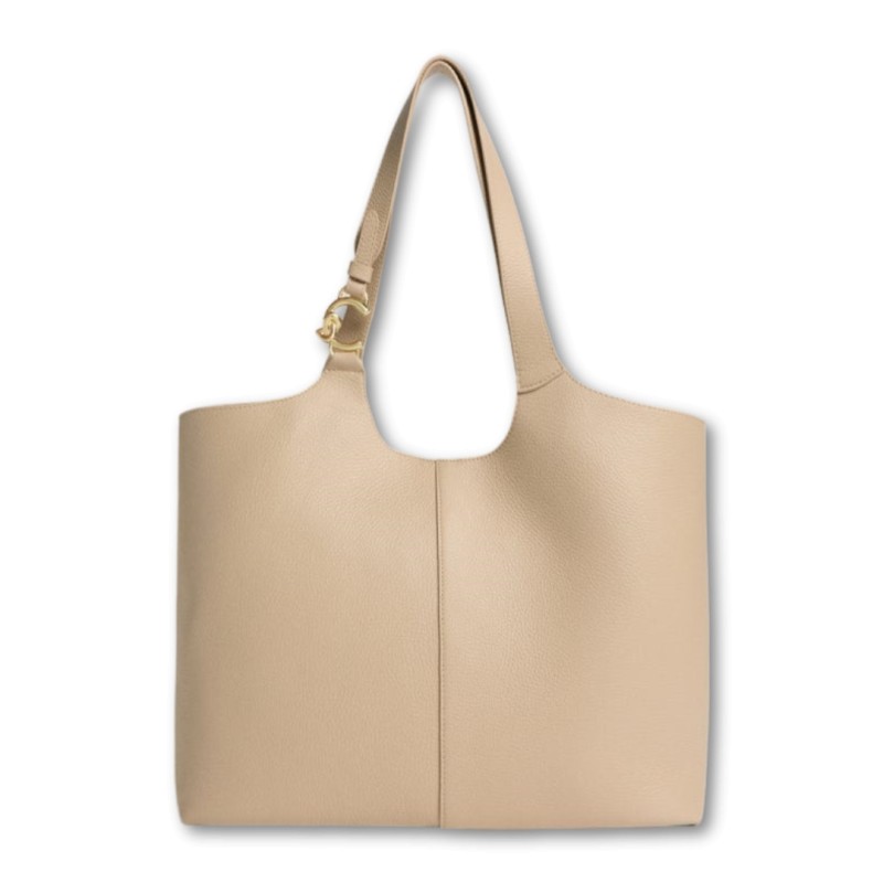 Coccinelle C-Easy is a tote bag featuring sinuous curves that enhance the beauty of the leather. Its functionality is expressed by its spacious interior and pouch, but the heart of the design lies in the closure, which can be secured with a central magnet, leaving the sides open, or by folding the sides using a drawstring. A metal element, found on the handle with the new C-Me logo, adds a touch of elegance to this extremely versatile bag. This model is crafted from leather that is specially machined and then tumbled to maintain its softness. This highly durable leather is easy to clean, making it ideal for everyday use.